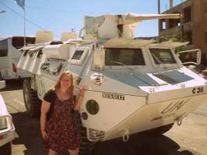 Photo 1: Israel in the background. Photo 2: with the UNIFIL officer (yes he’s from Indonesia!). Photo 3: with the UN tank.
