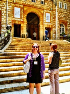 Oh in between our two meetings we had a tour of American University of Beirut’s campus. It’s very beautiful and just a minute walk from the beach. If I had longer than one year left in my undergrad I would love to study abroad there. Explanation of photos: 1. Graffiti in Beirut outside of Al-Majmoua office. 2. Me on AUB campus in front of main entrance. 3. Banyan tree on AUB Campus. 4. Pretty flowers on AUB campus. Well I think that’s enough for today! Peace and blessing 🙂